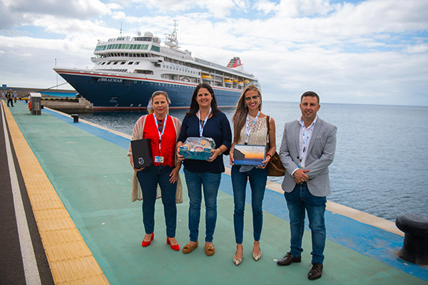 Cerca del millar y cuatrocientos tripulantes a bordo del crucero ‘Braemar‘, de la naviera Fred Olsen Cruise Lines, que atracó esta mañana en el muelle de Gran Tarajal, fueron recibidos por el Vicepresidente 1º del Cabildo Insular, Alejandro Jorge, y la Consejera de Empleo, Educación y Juventud, María Jesús de la Cruz, en representación del Presidente Insular que se encuentra estos días en la Feria World Travel Market de Londres trabajando en nuevos acuerdos con operadores turísticos internacionales para mejorar la conectividad aérea regular. Al acto también asistió la Alcaldesa de Tuineje, Esther Hernández, y la Concejala del municipio, Yurena Vera.