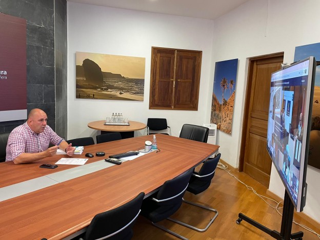 Durante la mañana de hoy, Sergio Lloret, presidente del Cabildo de Fuerteventura, participa en una reunión telemática con Cabildos y Ayuntamientos y el consejero de Transición Ecológica, Lucha contra el Cambio Climático y Planificación Territorial, José Antonio Valbuena, con el objetivo de analizar la situación actual de la transferencia de competencias de Costas desde el Estado a la Comunidad Autónoma de Canarias.