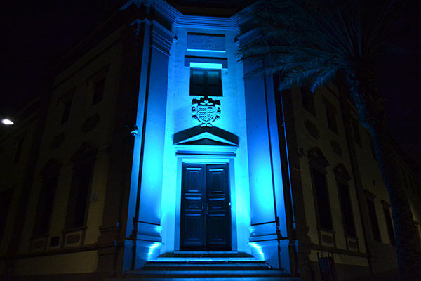 El color azul turquesa iluminó anoche, día 10 de octubre, la fachada principal del Cabildo de Fuerteventura con motivo de la celebración del Día Mundial de la Dislexia.