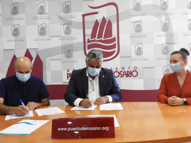 El consejero de Políticas Sociales del Cabildo de Fuerteventura, Víctor Alonso, y el alcalde del Ayuntamiento de Puerto del Rosario, Juan Jiménez, han suscrito en la mañana de hoy, viernes, día 9 de octubre, el convenio de colaboración en materia de Calidad de Vida y Dependencia, con el objetivo de dotar de recursos y garantizar la atención y asistencia en materia de asuntos sociales en el municipio, principalmente en el ámbito de bienestar y emergencia Social. En el acto de firma del convenio estuvo presente además la concejala de Servicios Sociales, Yanira Domínguez.