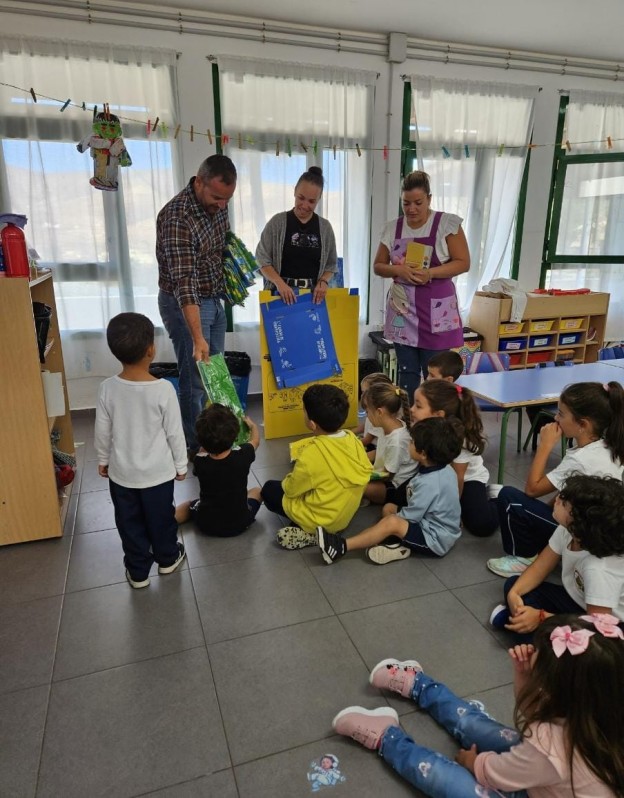 El Cabildo de Fuerteventura, a través del área de Residuos, lleva a cabo una campaña de concienciación con los escolares de los centros educativos de la Isla. En el día de ayer, el consejero insular, Enrique Pérez, visitó las escuelas unitarias del municipio de Betancuria, acompañado por el concejal de Servicios del, Enrique Cerdeña, y la concejala de Juventud y Educación del municipio, Esperanza González. Durante la visita, se hizo entrega a los responsables de los centros de una serie de contenedores de reciclaje para las clases, así como material para el reciclaje por fracciones al alumnado.