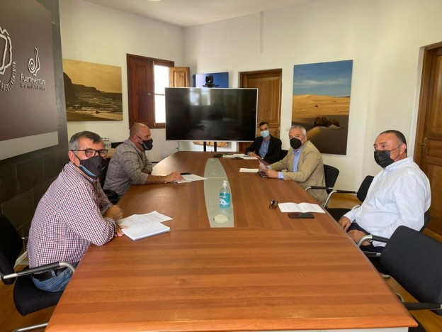 El presidente del Cabildo de Fuerteventura, Sergio Lloret López, y el consejero de Comercio, Domingo Pérez Saavedra, recibieron hoy, miércoles 21 de abril, a una representación de la Asociación de Empresarios y Comerciantes de Antigua (AECA). Su presidente, Francisco Manuel Ufano, les trasladó los objetivos a corto y largo plazo que consideran vitales para el desarrollo socioeconómico del municipio, y de Caleta de Fuste en particular.
