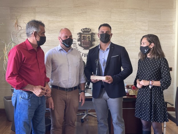El presidente del Cabildo de Fuerteventura, Sergio Lloret López, junto a los consejeros de Deportes y Turismo, Claudio Gutiérrez y Yessica de León, respectivamente, recibió ayer al deportista majorero Eduardo Blasco, proclamado campeón de España de Salvamento y Socorrismo en Distancias Cortas en el campeonato celebrado los pasados días 11 y 12 de diciembre en Valladolid. Este es su título número 40 como campeón de España Absoluto, con récord de la prueba incluido, aunque en su palmarés reúne más de 60 medallas conseguidas desde que comenzó a competir con diecisiete años.