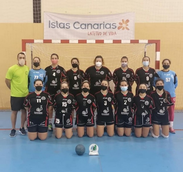 El trofeo fue recogido por la presidenta del Balonmano Morro Jable, Alicia Díaz, de manos de la presidenta de la Federación Insular de Balonmano de Fuerteventura, Sheila Fariña.
