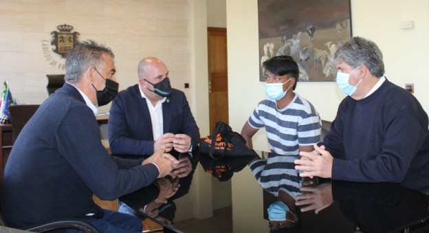 El presidente del Cabildo de Fuerteventura, Sergio Lloret López, y el vicepresidente segundo y consejero de Deportes, Claudio Gutiérrez, han recibido hoy en el Cabildo al joven jugador de golf Prakash Aisa Barrera, al que han felicitado por alzarse con el primer puesto del Campeonato de España Masculino de Pitch and Putt 2022, celebrado a finales de marzo en Las Palmas de Gran Canaria.