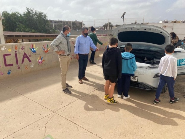 El consejero de Industria, Domingo Pérez, y dentro contexto de la presentación del vehículo eléctrico, indicó a los alumnos que “el vehículo de muestra alcanza una autonomía de casi 500 kilómetros, lo que da cobertura suficiente para los desplazamientos en la isla de Fuerteventura, ayudando a preservar su riqueza ambiental. Desde la consejería apoyamos todas las iniciativas que supongan un crecimiento sostenible para la isla de Fuerteventura, donde estamos apostando por las renovables, tanto en autoconsumo doméstico con subvenciones, como instalaciones energéticas para los centros públicos”.