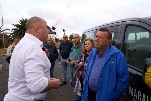 El presidente del Cabildo de Fuerteventura, Sergio Lloret, ha presentado hoy, martes 10 de enero, las obras de mejora que se llevarán a cabo en la plataforma aledaña al el Museo del Queso y el Molino de Antigua. Unos trabajos que se desarrollarán con el fin de mejorar el espacio de 15.000 metros cuadrados de superficie destinado a aparcamiento y que tradicionalmente acoge la Feria Insular de Artesanía, organizada en colaboración con el Colectivo Mafasca.