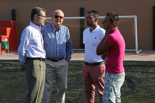 El presidente del Cabildo de Fuerteventura, Marcial Morales, y el consejero de Deportes, Andrés Díaz Matoso, realizaron hoy, miércoles, 9 de septiembre, una visita al campo de fútbol de La Oliva Basilio Fuentes Reyes, con el objeto de comprobar el estado de las obras de mejora que se llevan a cabo en este recinto deportivo. También asistió el alcalde de La Oliva, Domingo González Arroyo, que agradeció la colaboración prestada por la Corporación insular para mejorar el campo de fútbol municipal.