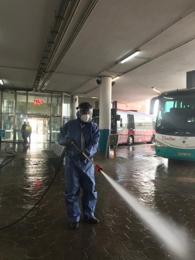 El Cabildo de Fuerteventura ha reforzado las labores de limpieza y desinfección de infraestructuras de transporte interurbano de viajeros en la Isla, en aplicación de las medidas marcadas por el Plan de Emergencia Insular, reactivado por la Corporación Insular con el objetivo de reducir la curva de contagios del Covid-19 en la Isla.