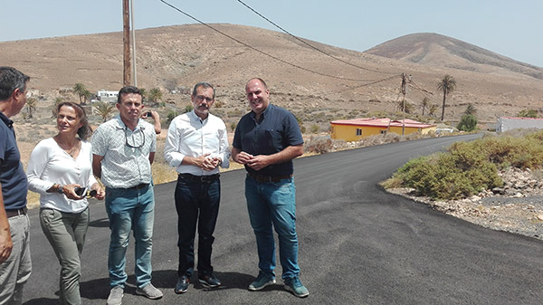 El presidente del Cabildo, Marcial Morales, la consejera de Obras Públicas, Edilia Pérez, y el alcalde de Tuineje, Sergio Lloret, han visitado las obras de asfaltado rural que la Corporación insular ha llevado a cabo estas últimas semanas en los diseminados rurales de El Caracol, Las Casitas, Recta Morales, Rosa de Los James, Los Sorribos y Tesejerague.
