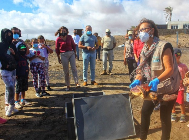 El Cabildo de Fuerteventura, a través de las áreas de Sostenibilidad y Gestión Medioambiental, ha liberado dos ejemplares de tortuga boba (Caretta Caretta) en Puerto Lajas, en el municipio de Puerto del Rosario. Los ejemplares son liberados tras recibir los cuidados pertinentes en el Centro de Recuperación y Conservación de Tortugas de Morro Jable.