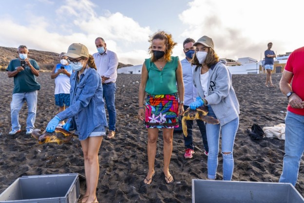 Tras su suelta, ambas tortugas regresan a su medio natural, en el marco del proyecto ‘De Vuelta a Casa’ del programa de educación ambiental del Cabildo, que trata de concienciar sobre la liberación de fauna accidentada y recuperada.