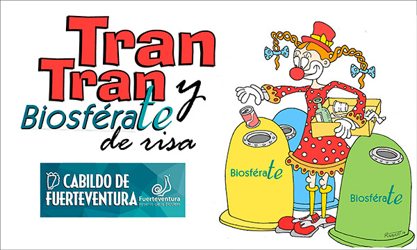 El Cabildo de Fuerteventura, a través del proyecto Biosférate, celebrará hoy, viernes, día 21 de septiembre, y mañana, sábado, día 22, distintas actividades en el stand Biosférate de risa, que instalará en la plaza Tran Tran, en Gran Tarajal, con motivo de la octava edición del Festival Internacional de Payasos de Fuerteventura Tran Tran. El objetivo de esta iniciativa es continuar concienciando y divulgando el cuidado y respeto por los valores naturales y culturales que hacen que la Isla haya sido declarada Reserva de la Biosfera por la UNESCO.