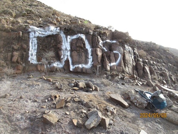 Dos de estos grafitis se ubican en la falda y mitad de la montaña, suponiendo una alteración de hábitats de especies protegidas en periodo de nidificación. La tercera pintada se encuentra en una piedra que conforma una de las estructuras aborígenes del Yacimiento Arqueológico El Aceitunal que se encuentra en la cima. Esta última infracción supone una afección al entorno de protección de un lugar de gran riqueza arqueológica.
