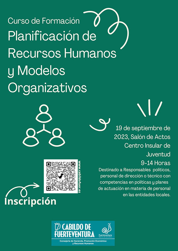 El Cabildo de Fuerteventura, desde la Consejería de Recursos Humanos, que dirige Nuria Cabrera, formará a personal de las entidades locales en planificación de recursos humanos y modelos organizativos. El curso tendrá lugar el próximo 19 de septiembre, de 09.00 a 14.00 horas, en el Centro Insular de Juventud y se dirige a responsables políticos, personal de dirección o técnico con competencia en políticas y planes de actuación en materia de personal en las entidades locales.