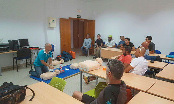 Los asistentes a este curso recibieron formación para realizar la reanimación cardiopulmonar, a usar desfibriladores y camillas inmovilizadoras flotantes, y a tratar atragantamientos, hemorragias y fracturas.