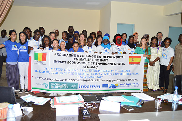 Y de forma transversal se pretende mejorar el potencial competitivo y el emprendimiento en el tejido productivo del espacio de cooperación. Así, se han erigido acciones que fomenten la mejora del capital humano y emprendimiento mediante un proyecto piloto de potenciación de la mujer en el ámbito empresarial. Este proyecto piloto tuvo lugar durante los meses de septiembre y noviembre entre Senegal y Fuerteventura con el intercambio de 30 participantes que tuvieron la oportunidad de mejorar su formación y habilidades en competencias digitales, en crecimiento profesional y enriquecimiento personal mediante la capacitación y práctica lingüística en inglés sobre los siguientes conceptos: