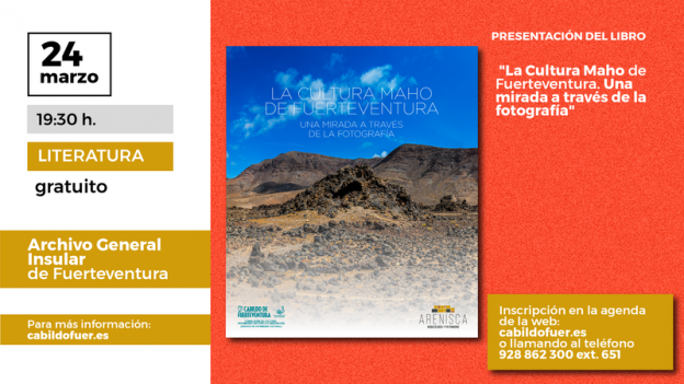 El Archivo General Insular de Fuerteventura acogerá la presentación de la publicación ‘La Cultura Maho de Fuerteventura. Una mirada a través de la fotografía’, un trabajo promovido por la Consejería de Cultura, que coordina Rayco León, y dirigido por el Servicio de Patrimonio Cultural. El evento tendrá lugar el jueves, 24 de marzo, a las 19.30 horas, siendo necesario inscribirse previamente en la agenda de la web cabildofuer.es o llamando al teléfono 928 862 300 (ext.651).