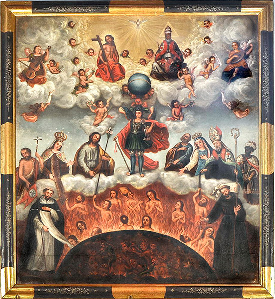 El cuadro de Ánimas es una pintura de grandes dimensiones y estilo barroco, que se ubica junto a la entrada lateral de la Iglesia de Tetir. Durante el proceso de restauración se detectó que la escena había sido objeto de una intervención anterior que cubrió totalmente la policromía original de la obra, y otra intervención realizada con el objetivo de consolidar el soporte que provocó deformaciones en el reverso de la obra. Todas estas afecciones han sido eliminadas con la actual restauración.