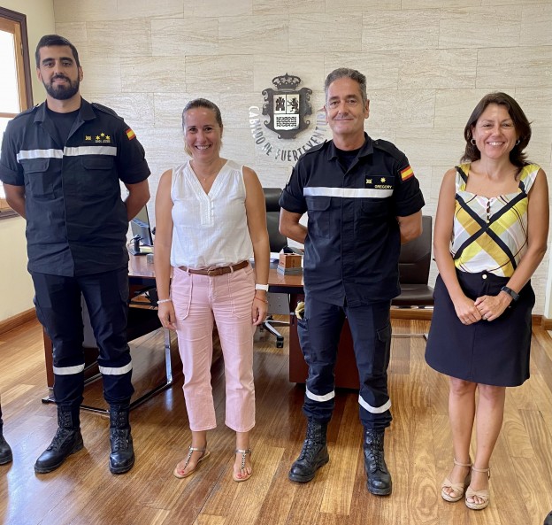 El Cabildo de Fuerteventura ha recibido hoy, miércoles, 2 de agosto, a los mandos de la Unidad Militar de Emergencia (UME) en Canarias. La presidenta del Cabildo, Lola García, y la consejera de Seguridad y Emergencias, Paloma Hernández, dieron la bienvenida al comandante jefe, Enrique Gregory Trovo, el capitán Rafael José Martín y el cabo Reinaldo Estévez Sánchez.