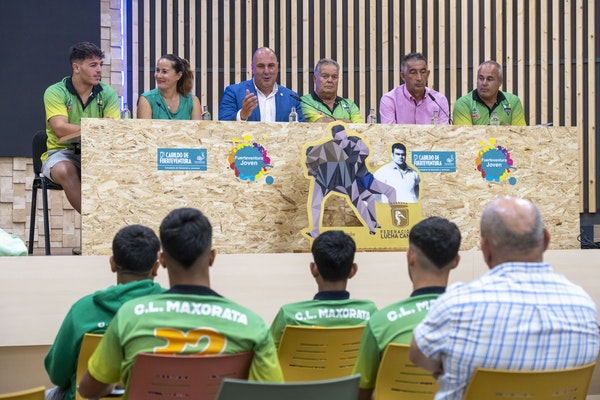 El Cabildo recibe, en el Centro Insular de Juventud, al Club Juvenil de Lucha Maxorata tras proclamarse campeones de Canarias, por primera vez en la historia, el pasado 3 de julio en la isla de Tenerife, frente al Candelaria, alzándose el conjunto de Tuineje con el trofeo Santiago Ojeda. Al acto de hoy, celebrado en el centro insular de juventud han asistido el presidente del Cabildo, Sergio LLoret, la vicepresidenta primera Lola García, y el vicepresidente segundo y consejero de Deportes, Claudio Gutiérrez., además del presidente del club, Francisco Padilla, el mandador Toño Benítez, y los miembros del equipo.