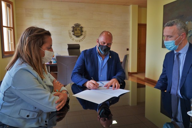 El presidente del Cabildo, Sergio Lloret López, y la consejera de Educación y Juventud, María Saavedra, recibieron hoy en las dependencias de la Casa Palacio al vicerrector de la Universidad Nacional de Educación a Distancia (UNED), Jesús de Andrés Sanz, quien acudió acompañado del nuevo director del centro asociado de la UNED en Fuerteventura, Emilio Ruano Martín.