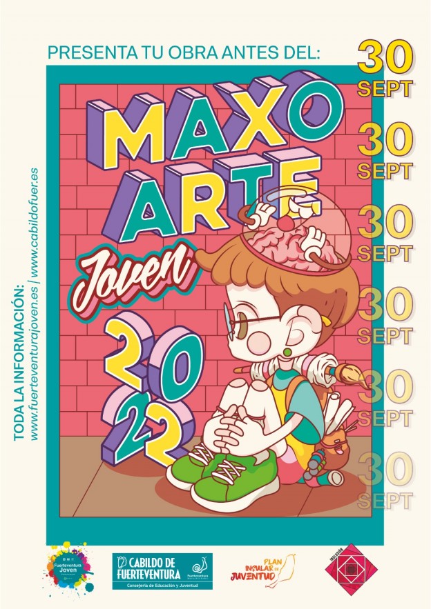 La Consejería de Educación y Juventud del Cabildo de Fuerteventura recuerda que hasta el 30 de septiembre permanecerá abierto el plazo para todas aquellas personas interesadas en presentar sus trabajos en la nueva edición del certamen artístico Maxo Arte Joven 2022.
