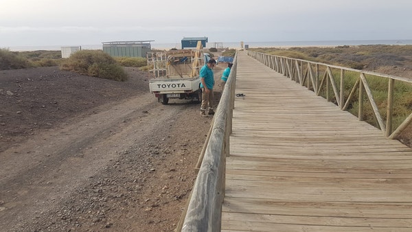 Personal de Medio Ambiente de la Corporación insular han realizado estas tareas de arreglo de las pasarelas, que transcurren por el Saladar de Jandía hasta la playa. De este modo, se mantienen en perfecto estado estas infraestructuras que permiten el paso de los ciudadanos por este lugar de interés científico y natural.