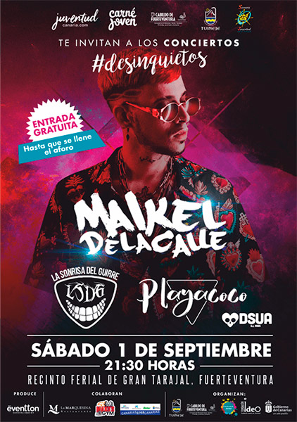 La Sonrisa del Guirre, Dsua Ill Man, Playa Coco y Maikel de la Calle conforman el cartel de una iniciativa, los conciertos #desinquietos, que busca fomentar el talento musical canario y a la vez promover una campaña de concienciación con valores que den respuesta y aporten un cambio en nuestra sociedad. Por ello, se quiere alternar el ocio responsable con el compromiso concienciando entre iguales en la juventud.