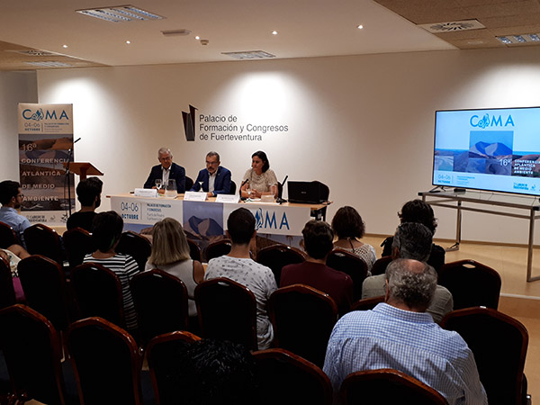 El Cabildo de Fuerteventura reúne a científico de Canarias e internacionales en la XVI Conferencia Atlántica de Medio Ambiente (CAMA) que comenzó hoy, jueves, día 4 de octubre, en el Palacio de Formación y Congresos. El presidente del Cabildo, Marcial Morales, el alcalde de Puerto del Rosario, Nicolás Gutiérrez, y la consejera de Medio Ambiente, Natalia Évora, inauguraron el encuentro donde expertos compartirán ideas y experiencias para gestar proyectos de futuro importantes para la gestión medioambiental en Fuerteventura. Con la biodiversidad, el patrimonio geológico y la conservación del medio como grandes áreas temáticas, esta nueva edición acoge asimismo la presentación de la experiencia Geoparque, en El Hierro, una figura de la Unesco que el Cabildo de Fuerteventura estudia aplicar en Fuerteventura. La CAMA se clausura este sábado, 6 de octubre, con una salida de campo, consistente en un recorrido científico por el islote de Lobos.