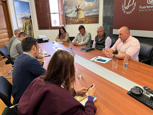 El presidente del Cabildo Insular, Sergio Lloret, y el vicepresidente Juan Nicolás Cabrera mantuvieron ayer, lunes 30 de enero, una intensa reunión de trabajo con el Consorcio Insular de Aguas de Fuerteventura (CIAF) y el Consejo de Abastecimiento de Aguas de Fuerteventura (CAAF), a la que se incorporaron, en una segunda parte, el alcalde de Pájara, Pedro Armas, y la concejala de Aguas del municipio, Dunia Álvaro.