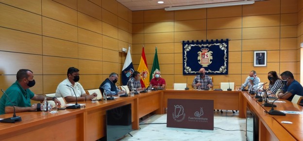 El presidente del Cabildo, Sergio Lloret López, se reunió hoy, lunes 31 de mayo, con representantes de los distintos ayuntamientos majoreros, para coordinar la inminente licitación del Plan de Desinfección, cuyas acciones pueden ya recibir financiación insular, ahora que ya el Pleno aprobó los Presupuestos y cuenta, por tanto, con las correspondientes partidas. ‘Estamos aquí para decidir qué acciones quieren que apoyemos y financiemos, a ver si podemos atender todas las demandas municipales. Nuestra voluntad es tratar de dar respuesta a todo lo que nos han solicitado, establecer un calendario de trabajo y definir y cerrar pliegos para mandarlos a licitar’, explicó el presidente.