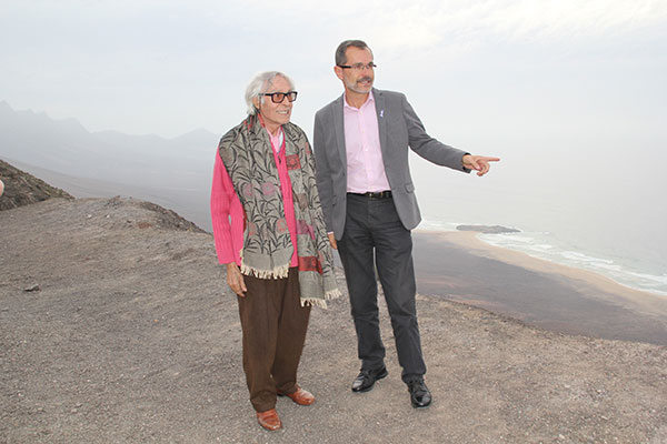 El presidente del Cabildo de Fuerteventura mantuvo ayer, jueves, día 4 de febrero, una reunión con el artista Pepe Dámaso con el objeto de ultimar la supervisión artística del proyecto del Mirador del Barranco de Los Canarios, en el Parque Natural de Jandía. El encuentro, al que también asistió la consejera de Obras Públicas, Carreteras y Patrimonio, Edilia Pérez, y el arquitecto Francisco Román Barbero, autor del proyecto junto a José Miguel Díaz Martínez, entre otros, ha permitido «culminar todo un proceso para entregar al Gobierno de Canarias un proyecto ya supervisado para que salga a concurso este año, con 1.800.000 euros que ya están consignados en los Presupuestos Generales de la Comunidad Autónoma para 2016», anunció Morales durante la visita que también realizaron al lugar situado en la degollada de Los Canarios, desde donde se observa el paraje único de Cofete y hasta se puede divisar la costa del Cotillo, al noroeste de la Isla.