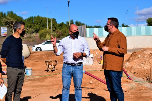 El presidente del Cabildo, Segio Lloret López, acompañado del consejero de Políticas Sociales, Adargoma Hernández, han visitado los trabajos previos al ajardinamiento de la zona anexa al Centro de Día y Residencia de Personas con discapacidad que situado en la calle Aragón, en Puerto del Rosario.