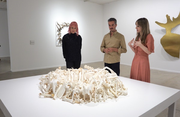La artista Cristina Déniz muestra la relación entre el ser humano y el paisaje con obras a partir de huesos de animales y ceniza recogida tras incendios en territorio canario