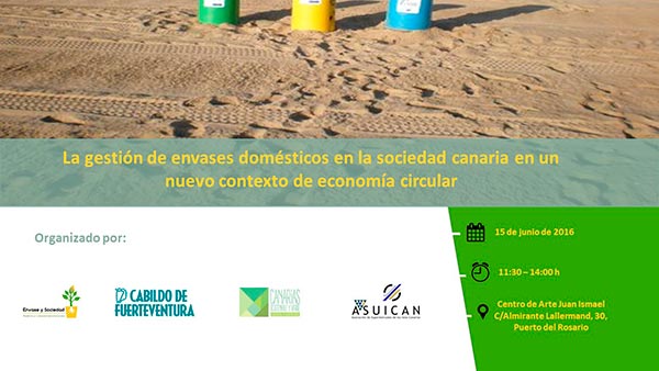 El Cabildo de Fuerteventura, a través de la Consejería de Residuos, que dirige Luisa Ramos, y la Plataforma Envase y Sociedad celebrarán el próximo miércoles, 15 de junio, la jornada formativa ‘La gestión de envases domésticos en la sociedad canaria en un nuevo contexto de la economía circular’. La jornada tendrá lugar de 11.30 a 14.00 horas, en el Centro de Arte Juan Ismael.