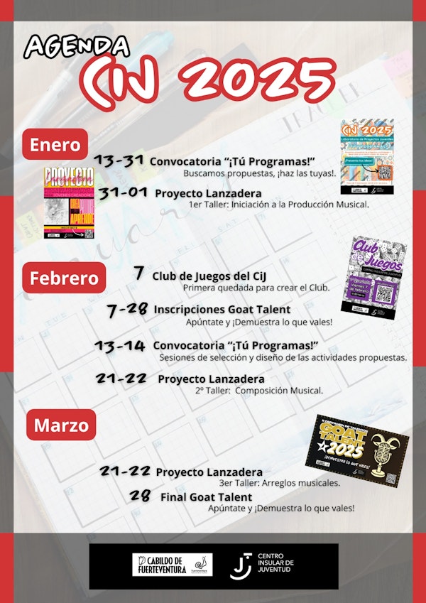Asimismo, el Club de Juegos es un espacio dedicado a los aficionados a los juegos de mesa, cuya primera quedada está programada para el 7 de febrero a las 17:00 horas. Próximamente, también se abrirá el proceso de inscripción para el certamen de talentos Goat Talent 2025, continuando con el éxito de su edición anterior. Además, el encuentro de cultura urbana CiJ Hop regresará en junio, ofreciendo actividades de hip hop, graffiti, baile y otras expresiones urbanas.