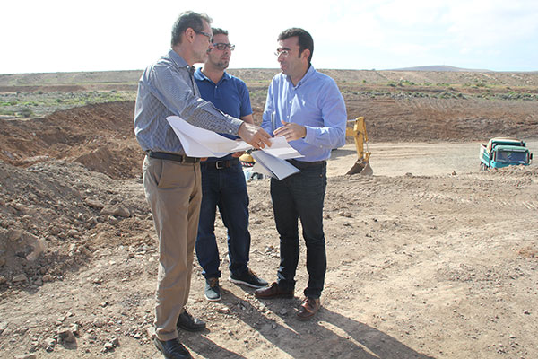 El Consejo Insular de Aguas, dependiente del Cabildo de Fuerteventura, lleva a cabo una serie de obras en el barranco de Guisguey para aprovechar el agua de lluvia, evitar que se pierda tierra de la superficie al mar y mejorar el nivel y la calidad del agua almacenada en el subsuelo de la Isla. El presidente de la Corporación insular, Marcial Morales, visitó hoy, miércoles, día 7 de diciembre, estos trabajos con el consejero de Aguas, Andrés Díaz Matoso, y el técnico del Consejo Insular de Aguas Domingo Montañez.