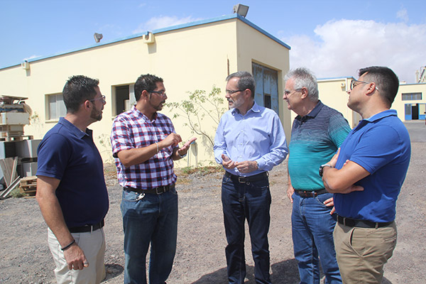 El presidente del Cabildo de Fuerteventura, Marcial Morales, y el consejero de Aguas, Andrés Díaz, visitaron hoy, viernes 7 de septiembre, la planta desaladora del Consorcio de Aguas de Abasto de Fuerteventura (CAAF), donde irá instalado el aerogenerador del parque eólico con consumos asociados. El molino forma parte de una obra adjudicada recientemente a Suez Treatment Solutions por más de 2.700.000 euros.
