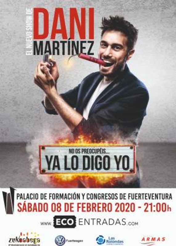 El presentador de televisión, actor, imitador y humorista español, Dani Martínez, llega a Fuerteventura con su nuevo show No os preocupéis… ¡Ya lo digo yo!, un espectáculo de humor e improvisación a raudales que tendrá lugar el próximo 8 de febrero a las 21.00 horas en el Palacio de Formación y Congresos.
