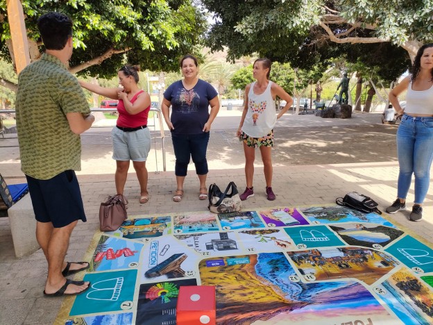 El juego facilita la difusión de toda esta información, a través de un tablero a escala humana, de tres por tres metros, que se extiende en plazas y parques para que las personas participantes caminen recorriendo los distintos itinerarios participativos que recoge el reglamento. Al estilo del conocido ‘juego de la oca’, unos objetivos que cumplir y también casillas comodín de las que solo se sale si se responde correctamente a unas preguntas, además de un dado que introduce el “factor azar” en la partida. El carácter lúdico de la actividad no resta rigor informativo al detallado repaso que ofrece el recurso sobre las posibilidades legales del reglamento, pero pone especial acento en fomentar la participación ciudadana en Fuerteventura.