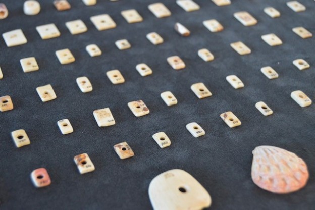 El Museo Arqueológico de Fuerteventura expone en la “vitrina del mes” un hallazgo casual de más de ochenta cuentas marinas  encontradas en el Malpaís de la Arena (La Oliva).