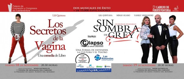 El Cabildo de Fuerteventura lleva al Palacio de Formación y Congresos los musicales de éxito ‘Los Secretos de la Vagina’ y ‘Sin Sombra de Grey’, de la compañía de teatro Clapso Producciones. Más de 15.000 espectadores han disfrutado ya de estos dos espectáculos que llegan este fin de semana a Fuerteventura.