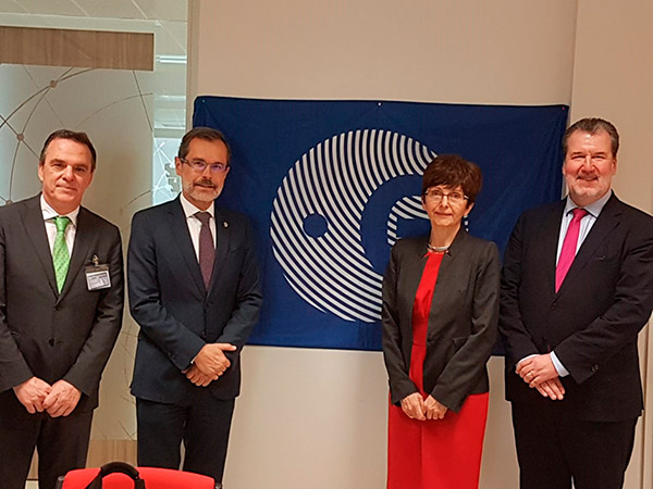 El presidente del Cabildo, Marcial Morales, sella en Toulouse un acuerdo con la directora de Telecomunicaciones de la Agencia Espacial Europea