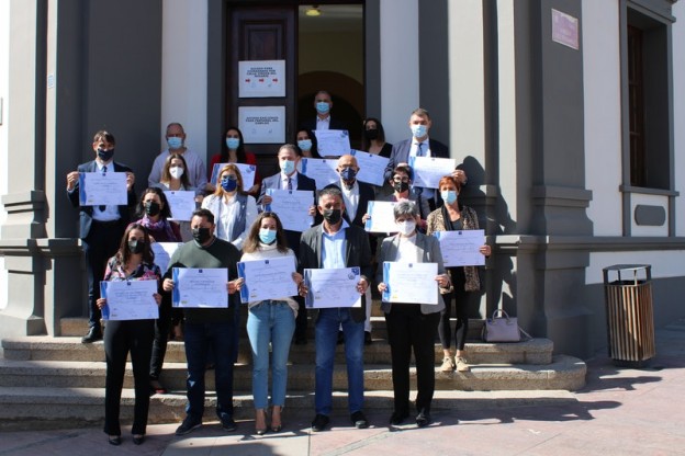 El Patronato de Turismo de Fuerteventura realiza la entrega de los diplomas SICTED a las empresas que han obtenido dicho reconocimiento por su mejora de la calidad continua y por la realización de una muy buena gestión de prácticas en la lucha contra el Covid. Al acto, celebrado hoy en el salón de plenos del Cabildo, asistieron la vicepresidenta del Patronato de Turismo y consejera del ramo, Jessica de León; el vicepresidente segundo del Cabildo, Claudio Gutiérrez; los concejales de Turismo de La Oliva, Tuineje y Pájara, Marcelino Umpiérrez, Nélida Padilla y Tina Da Silva, respectivamente, así como representantes de las empresas que han obtenido el distintivo.