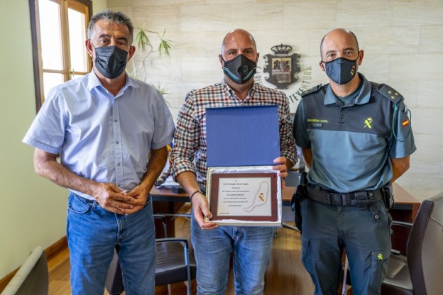 El presidente del Cabildo, Sergio Lloret López, ha recibido hoy miércoles en visita institucional al capitán jefe de la Guardia Civil en Fuerteventura, Pedro Peinado, con quien ha departido unos minutos y agradecido la entrega de una placa con la que la Benemérita quiere agradecer al presidente y a la Institución insular su colaboración con el Cuerpo de la Guardia Civil de Fuerteventura. En el encuentro, en el que se habló de la próxima conmemoración de la Virgen del Pilar, Patrona de la Guardia Civil, también estuvo presente el vicepresidente segundo, Claudio Gutiérrez.