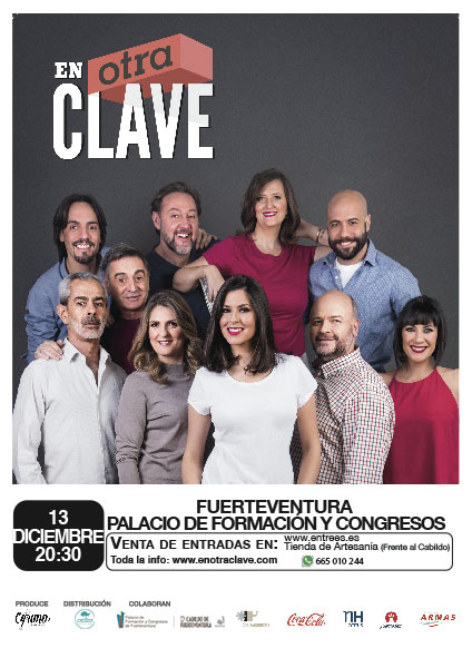 El Palacio de Formación y Congresos de Fuerteventura acoge mañana, miércoles, 13 de diciembre, a las 20.30 horas, la grabación del programa de televisión ‘En otra Clave’. Las entradas para este evento pueden adquirirse por un precio de 10 euros en la web www.entrees.es o en la Tienda de Artesanía del Cabildo de Fuerteventura, en la calle Primero de Mayo de Puerto del Rosario.