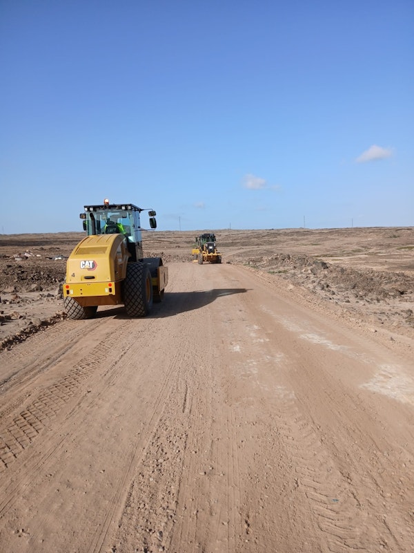 El tren de recebe del Cabildo de Fuerteventura se encuentra trabajando con intensidad en la carretera de tierra que une Corralejo con El Cotillo, siguiendo el litoral norte de la isla a través de Majanicho.