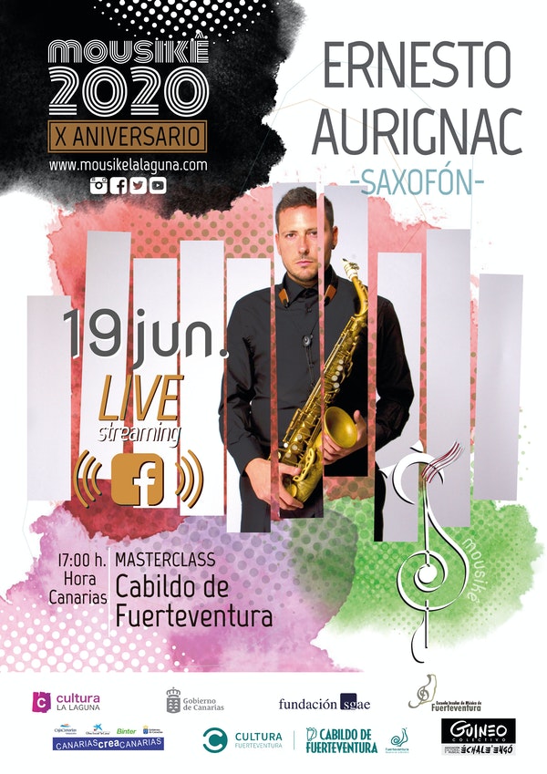 La consejería de Cultura del Cabildo de Fuerteventura y Mousikê continúan haciendo frente a las limitaciones impuestas por el Covid-19 con tres masterclass a cargo del poliédrico Ernesto Aurignac, que recientemente estrenó #themusicBOOM, un montaje de vídeo-audio para el Covid-19 y por la cultura.