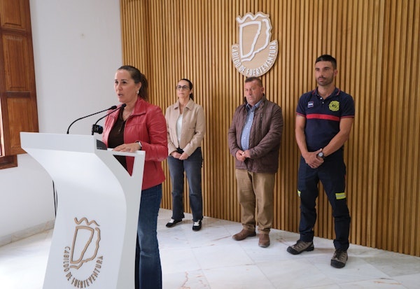 García explicó que “el Cabildo activó el Plan Territorial Insular de Emergencias de Protección Civil de la Isla de Fuerteventura (PEIN) desde las 00.00 horas y en la mañana de hoy hemos mantenido una reunión con representantes de la Agencia Estatal de Meteorología (AEMET), así como la Dirección de Emergencias del Gobierno de Canarias, para conocer como va a evolucionar la alerta y tomar medidas de cara a la feria”.